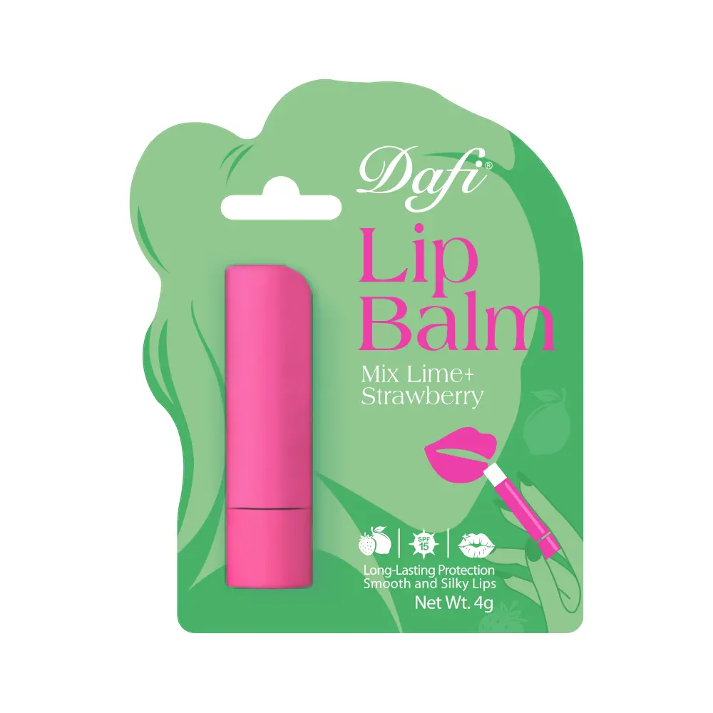 بالم لب دافی، با طعم لیمو توت فرنگی، با دارا بودن SPF15 از لبها به طور کامل محافظت کرده و از خشک شدن و ترک خوردن آنها جلوگیری میکند. این بالم لب خاصیت مرطوبکنندگی داشته و لبهای خشک را آبرسانی میکند. این محصول از لب دربرابر آسیبها محافظت کرده و در صورت بروز آسیب موجب ترمیم و بهبود آن میشود. بالم لب دافی سرشار از مواد مغذی بوده و استفاده از آن، در طولانی مدت، لبها را صاف و ابریشمی میکند. این محصول برای استفاده آقایان و خانمها و همچنین تمام سنین مناسب است.